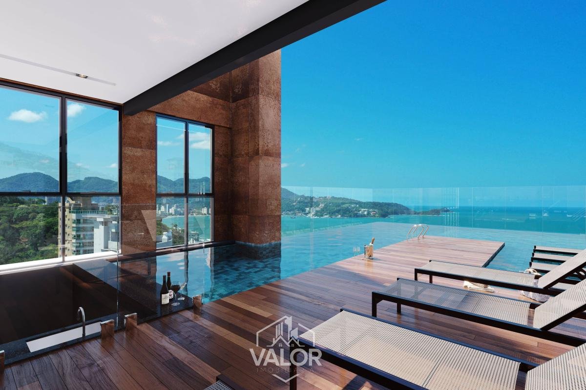 Lazer Completo na Cobertura – Rooftop com piscinas de borda infinita e uma vista espetacular para o mar.